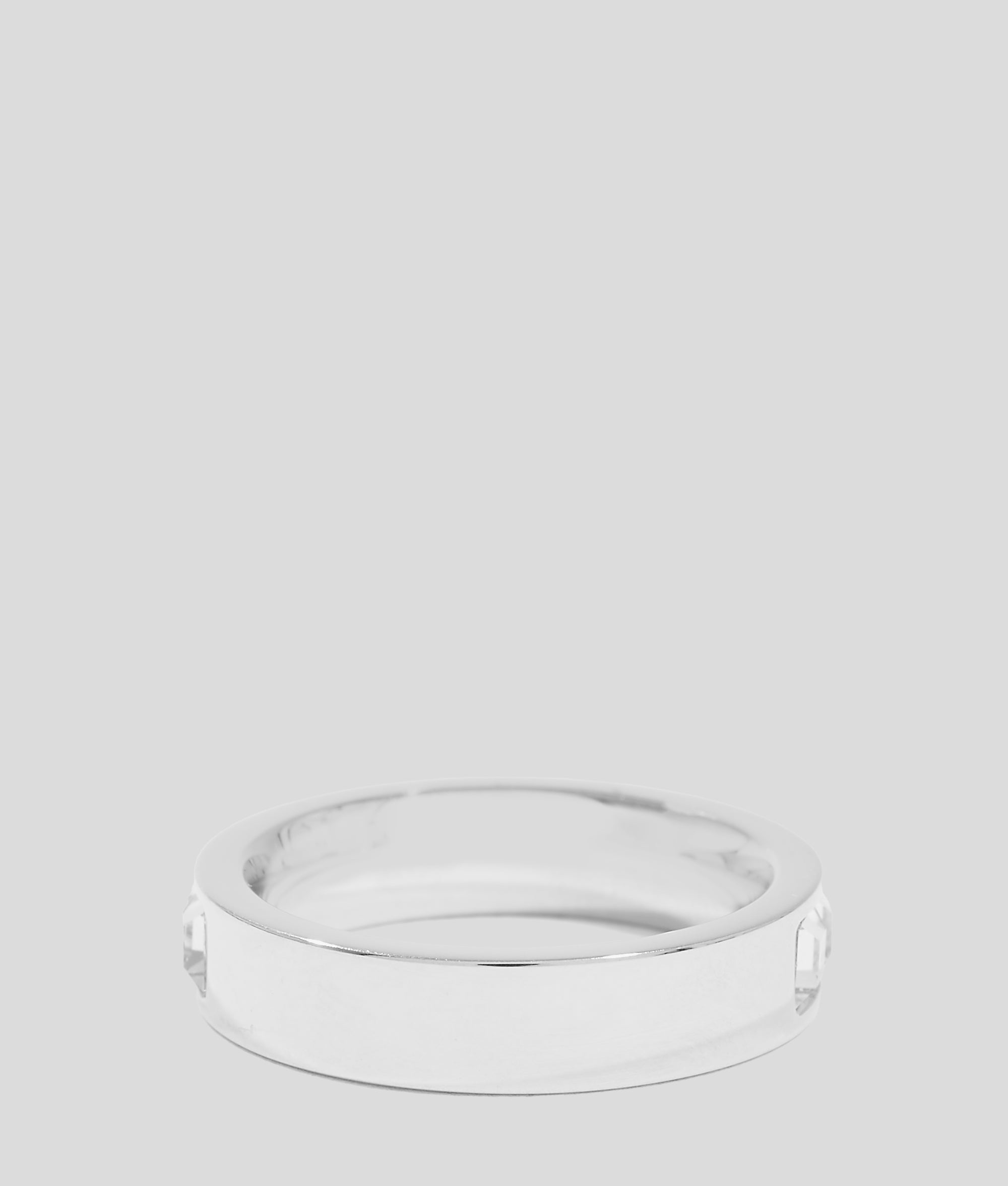 Embrace a striking blend of elegance and edge with this polished silver ring. Adorned with sparkling square-cut crystals. it captures a refined and bold design.