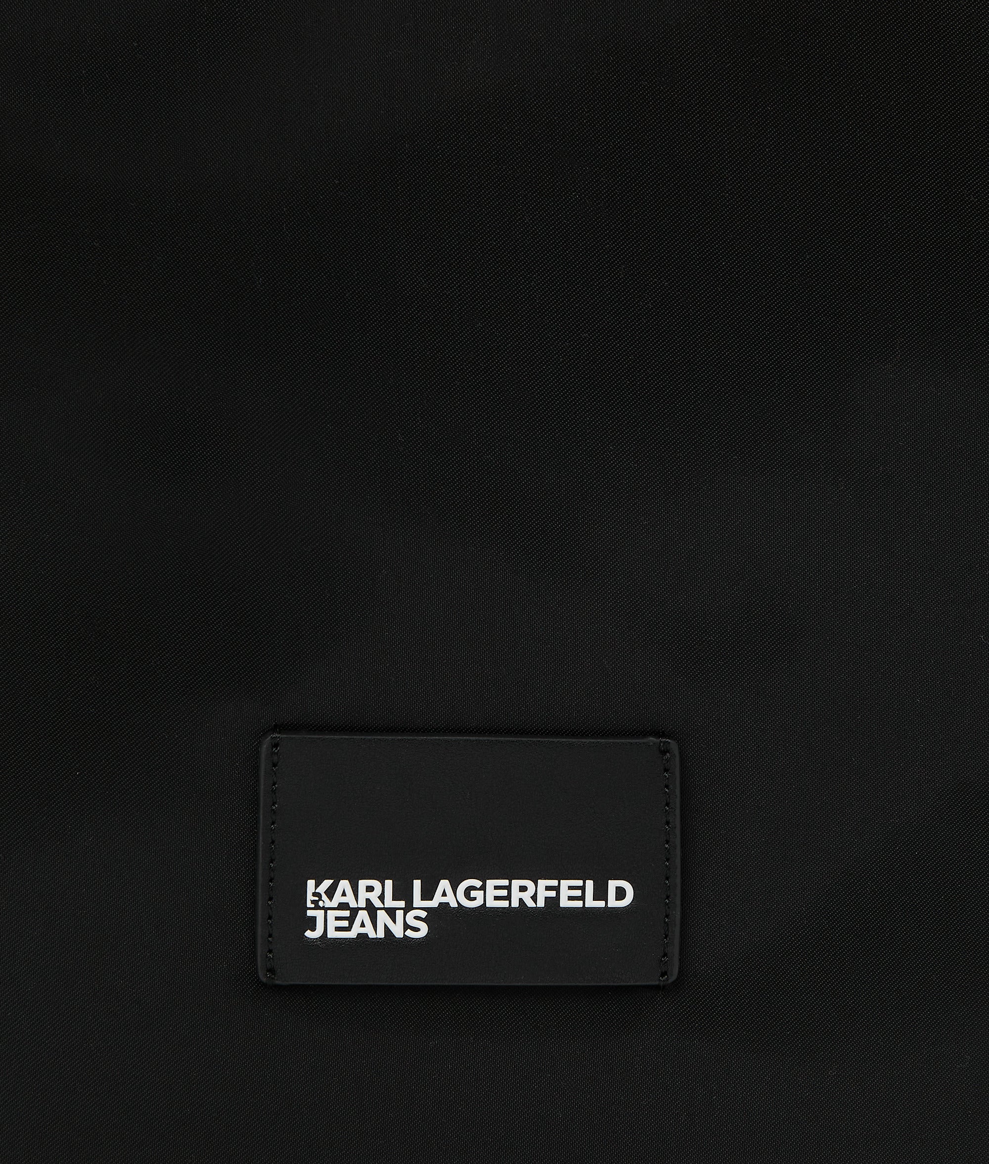 A sleek. shiny fabrication meets contemporary design in this large hobo bag. featuring a slouchy silhouette and a bold structured handle. A zip closure keeps items safe. while a subtle KARL LAGERFELD JEANS logo patch anchors the piece.