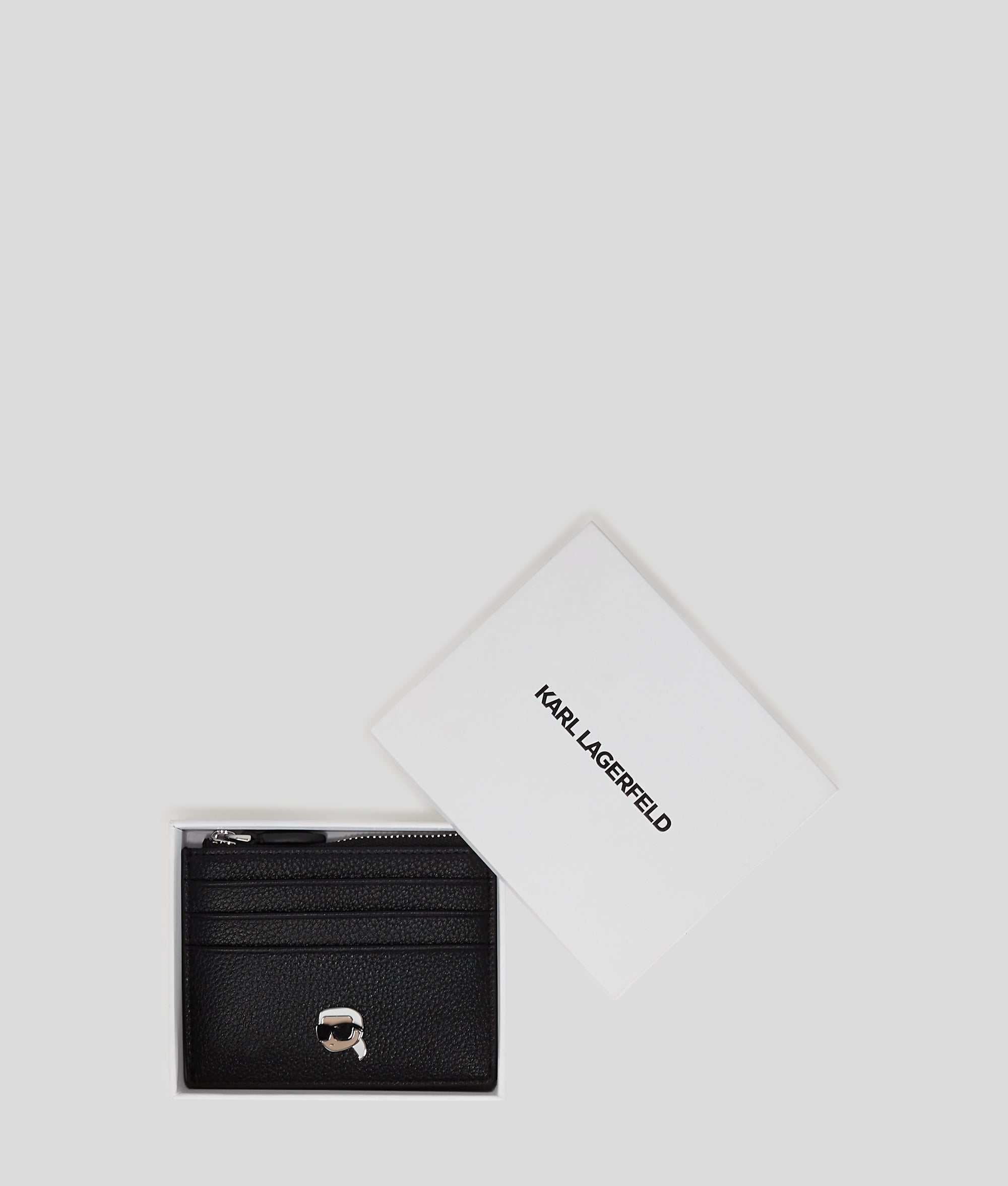 Elevate your accessory game with this sleek cardholder. featuring a playful Ikon Karl pin. Its zip-top middle compartment and multiple card slots ensure both style and practicality. making it a must-have for daily use.