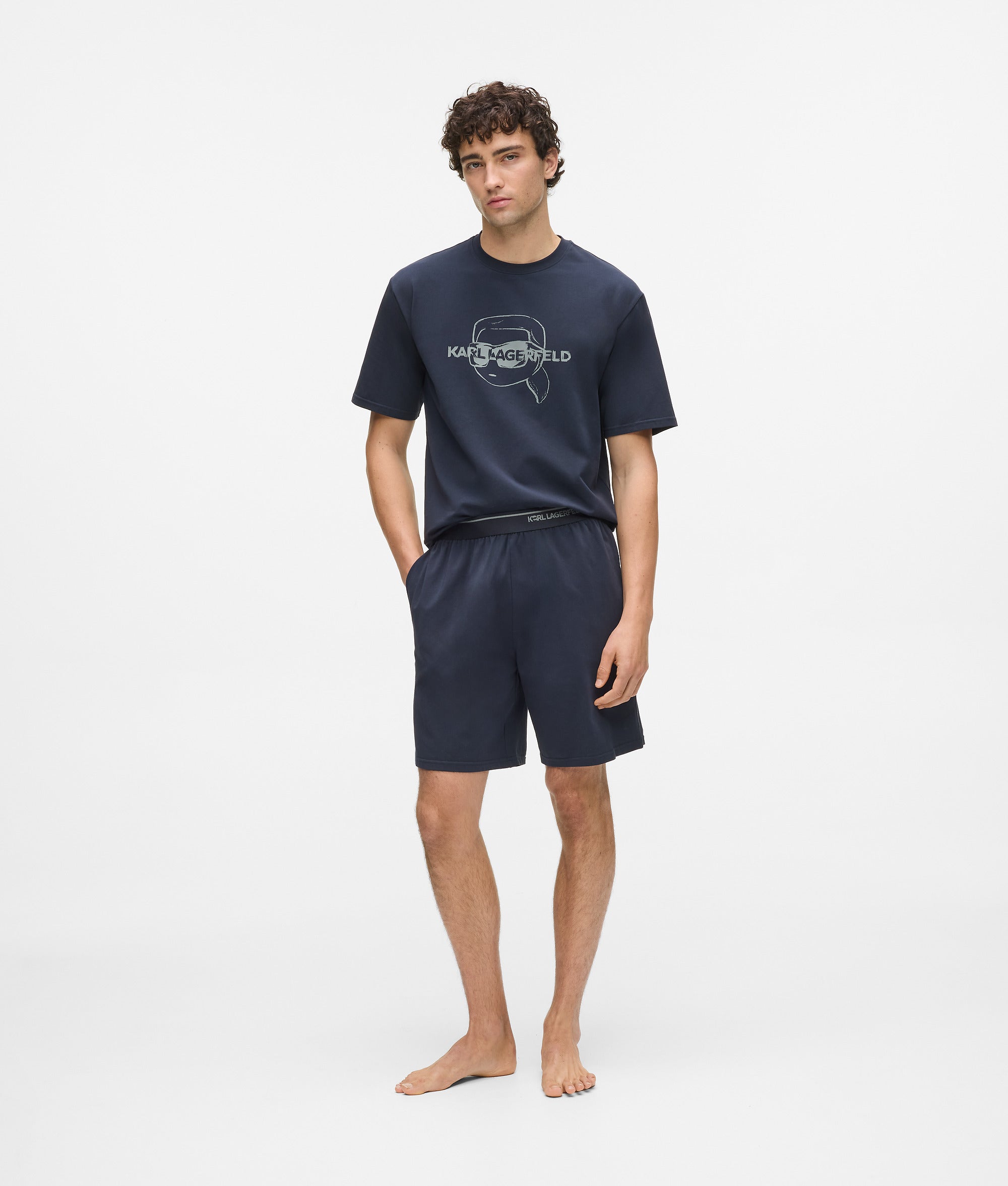 Designed for relaxed evenings. this crew-neck T-shirt and shorts pajama set offers breathable comfort with playful Ikon Karl artwork.