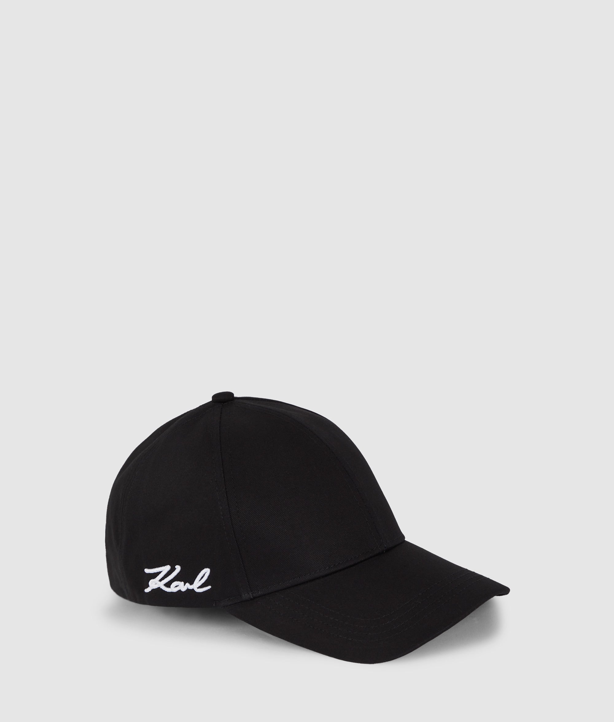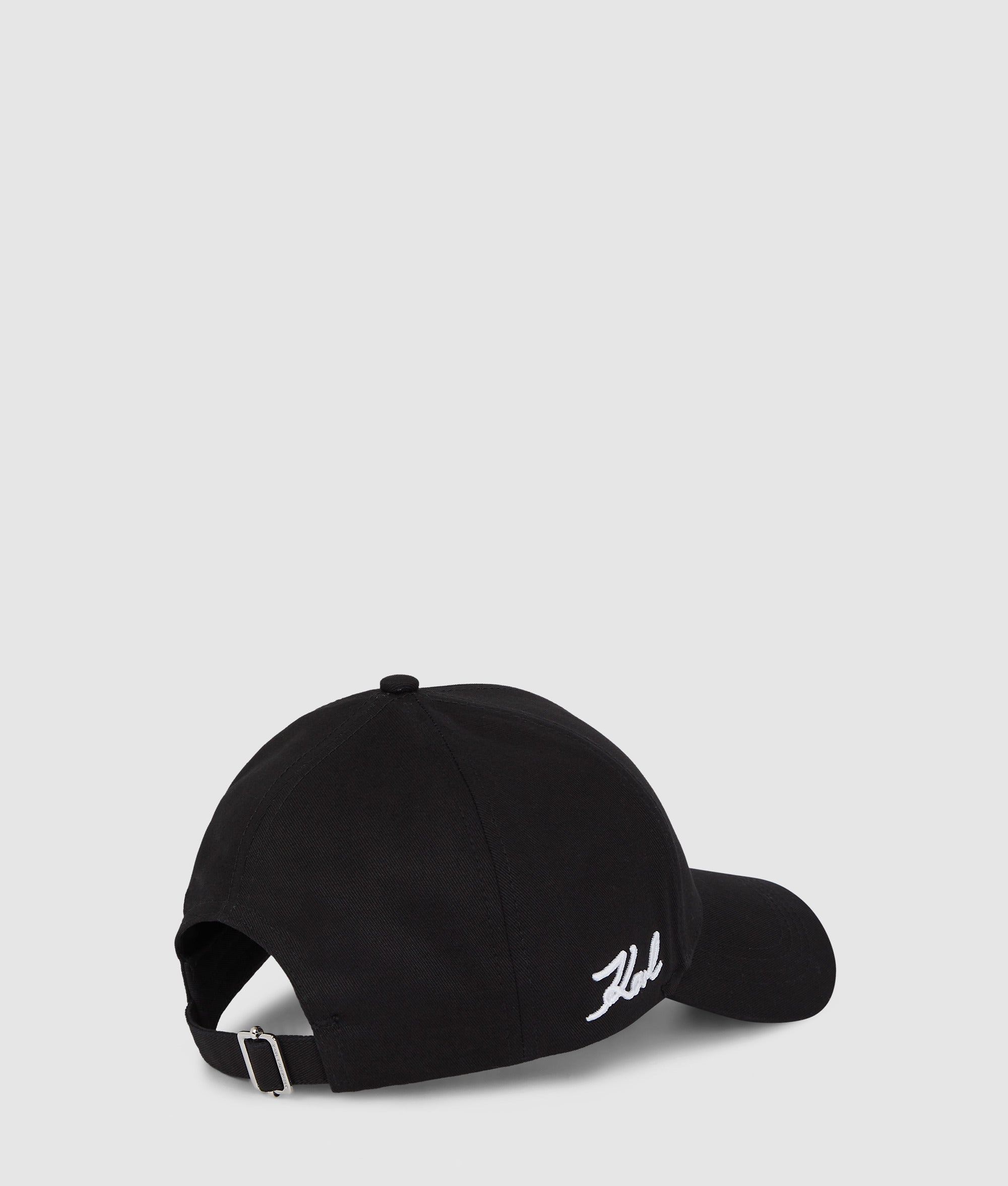 Contrasting Karl Signature embroidery adds a distinctive touch to this classic cap. Designed for effortless wear. it features an adjustable strap to ensure a comfortable fit. Perfect for elevating any casual look.