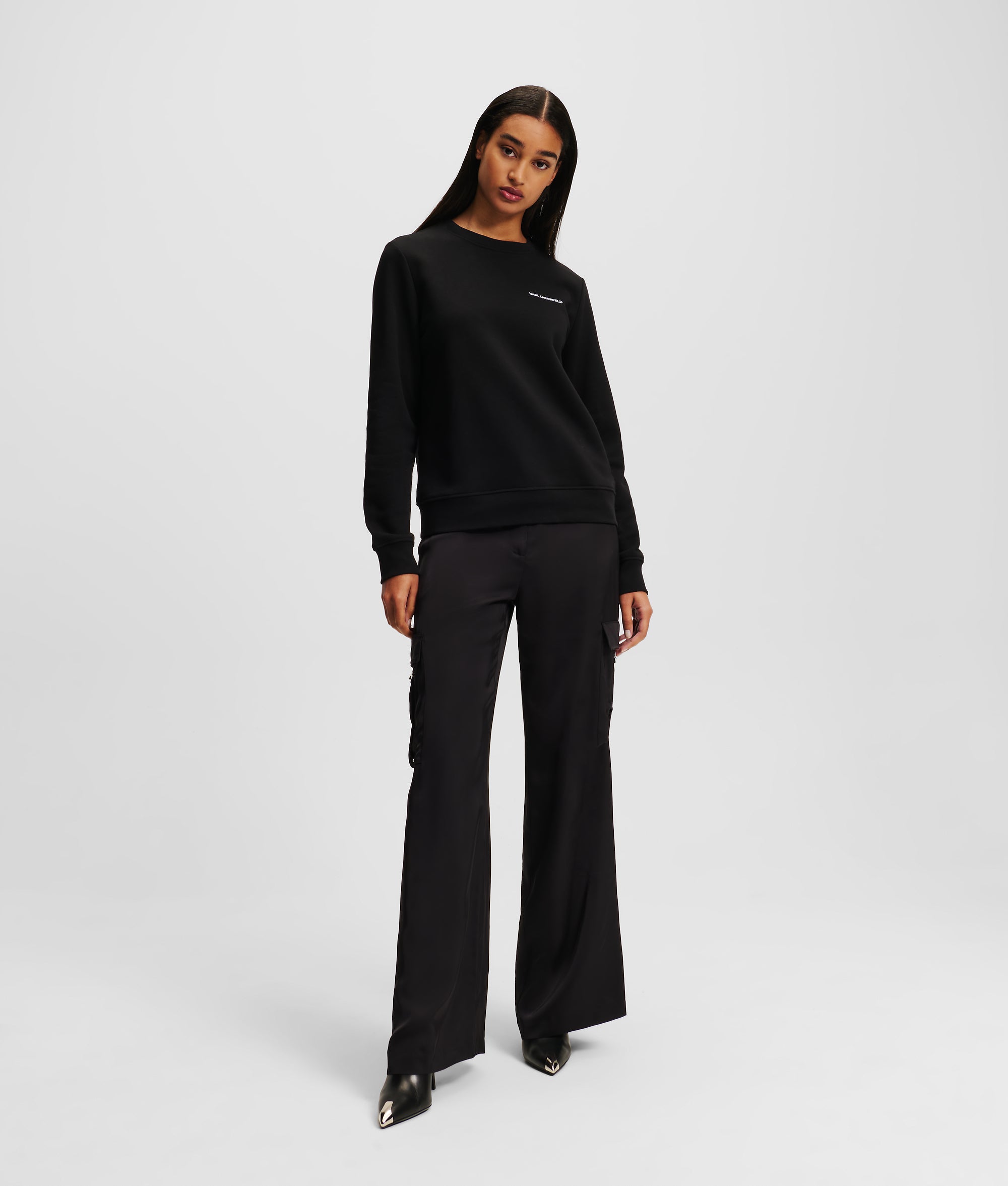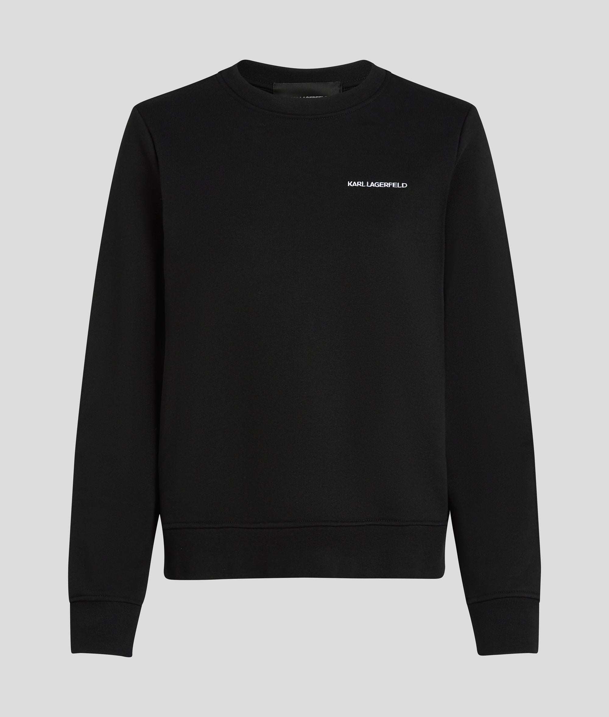 The ultimate athleisure classic. this sweatshirt is topped with a minimalist KARL LAGERFELD logo at the chest for understated cool. while rib detailing adds subtle texture to the collar. sleeve cuffs. and hem.
