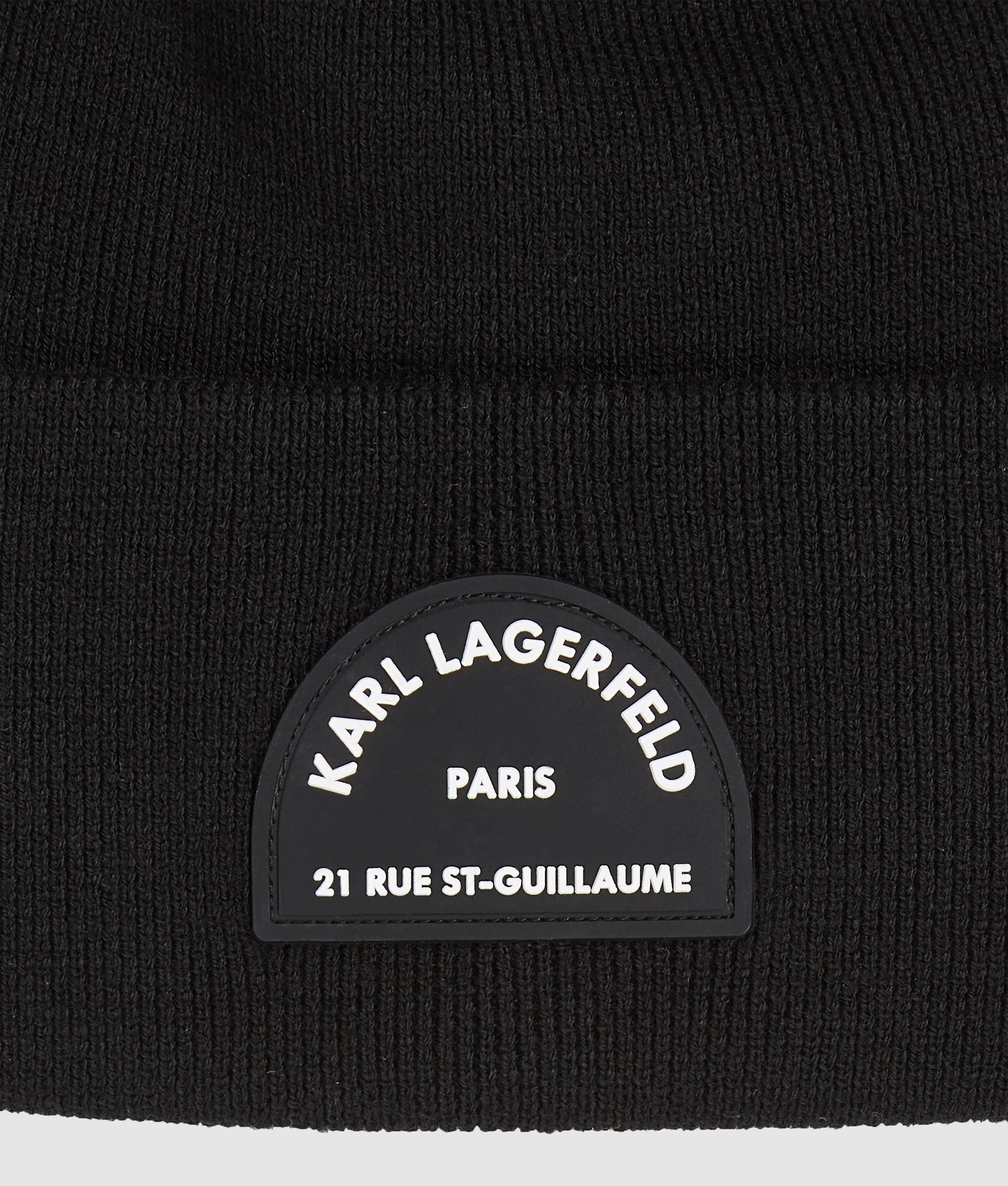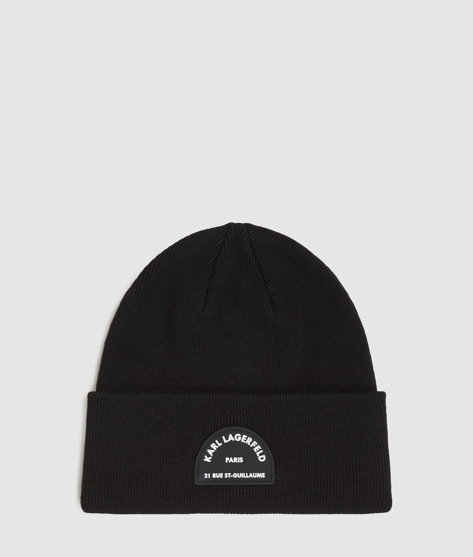 Add effortless style to any winter look with this cozy rib-knit beanie. topped with the iconic Rue St-Guillaume logo.