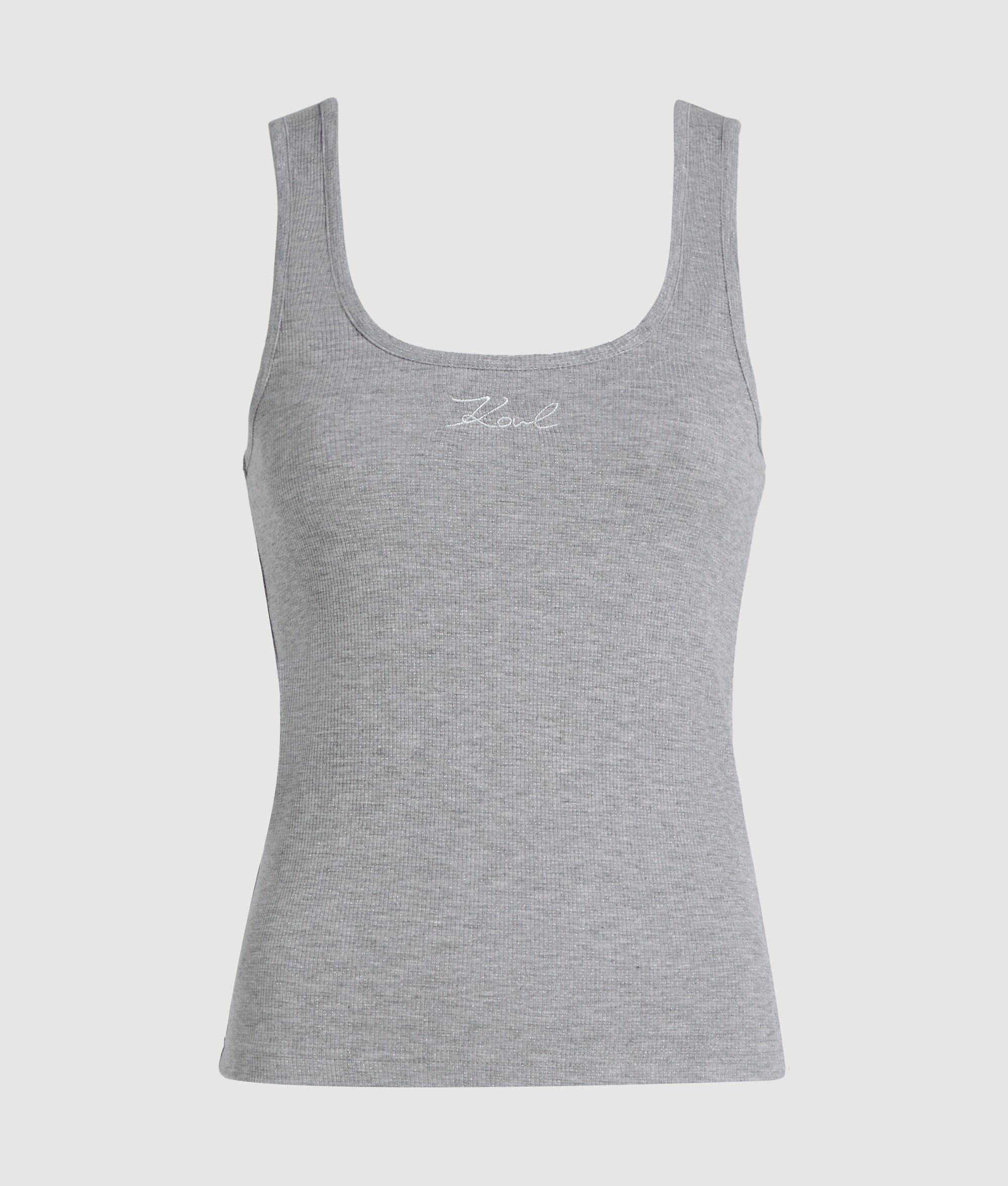 Designed for effortless layering or confident solo styling. this metallic tank top is the perfect partner to the matching sweatpants and zip-up sweatshirt for an elevated. off-duty look.