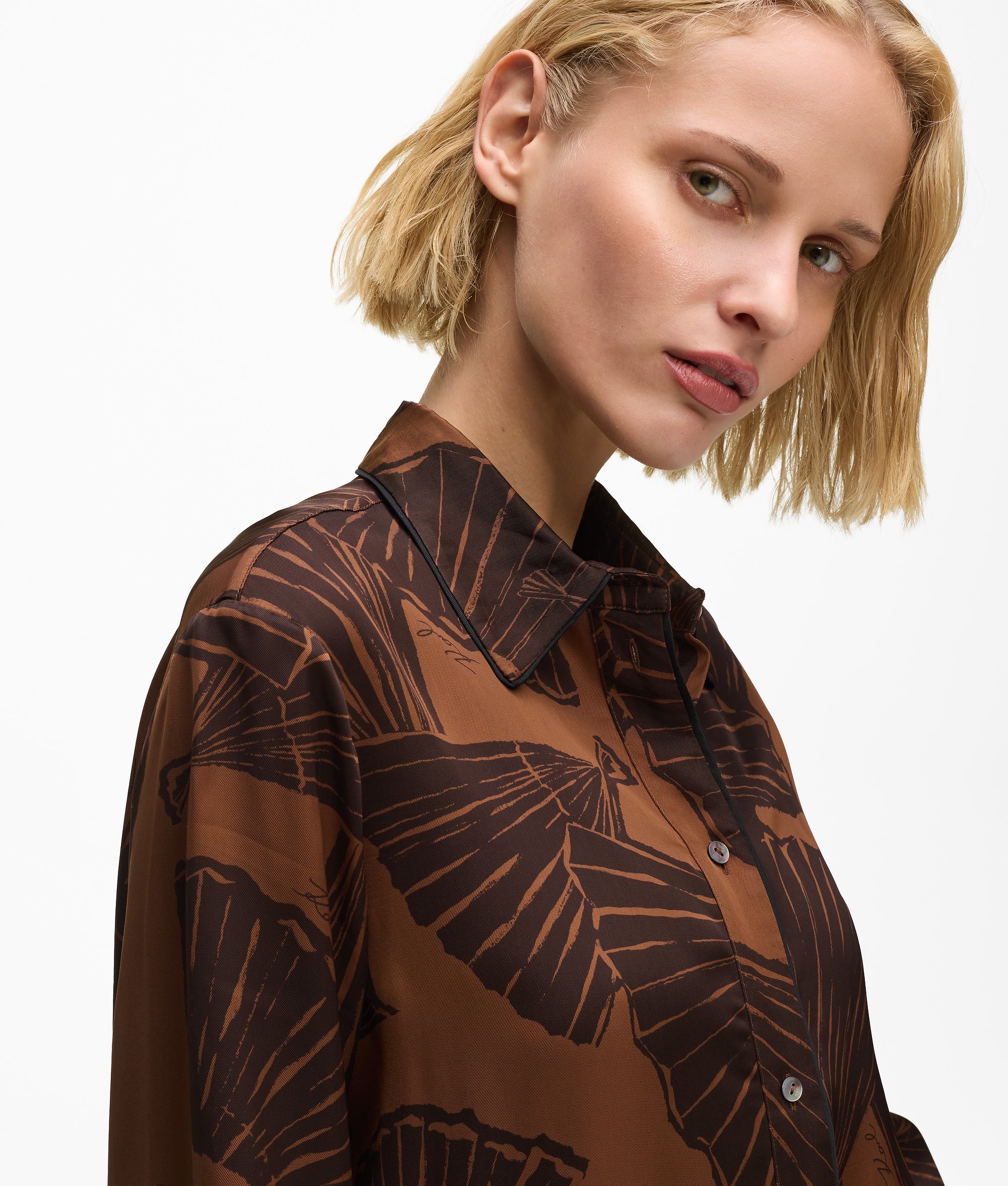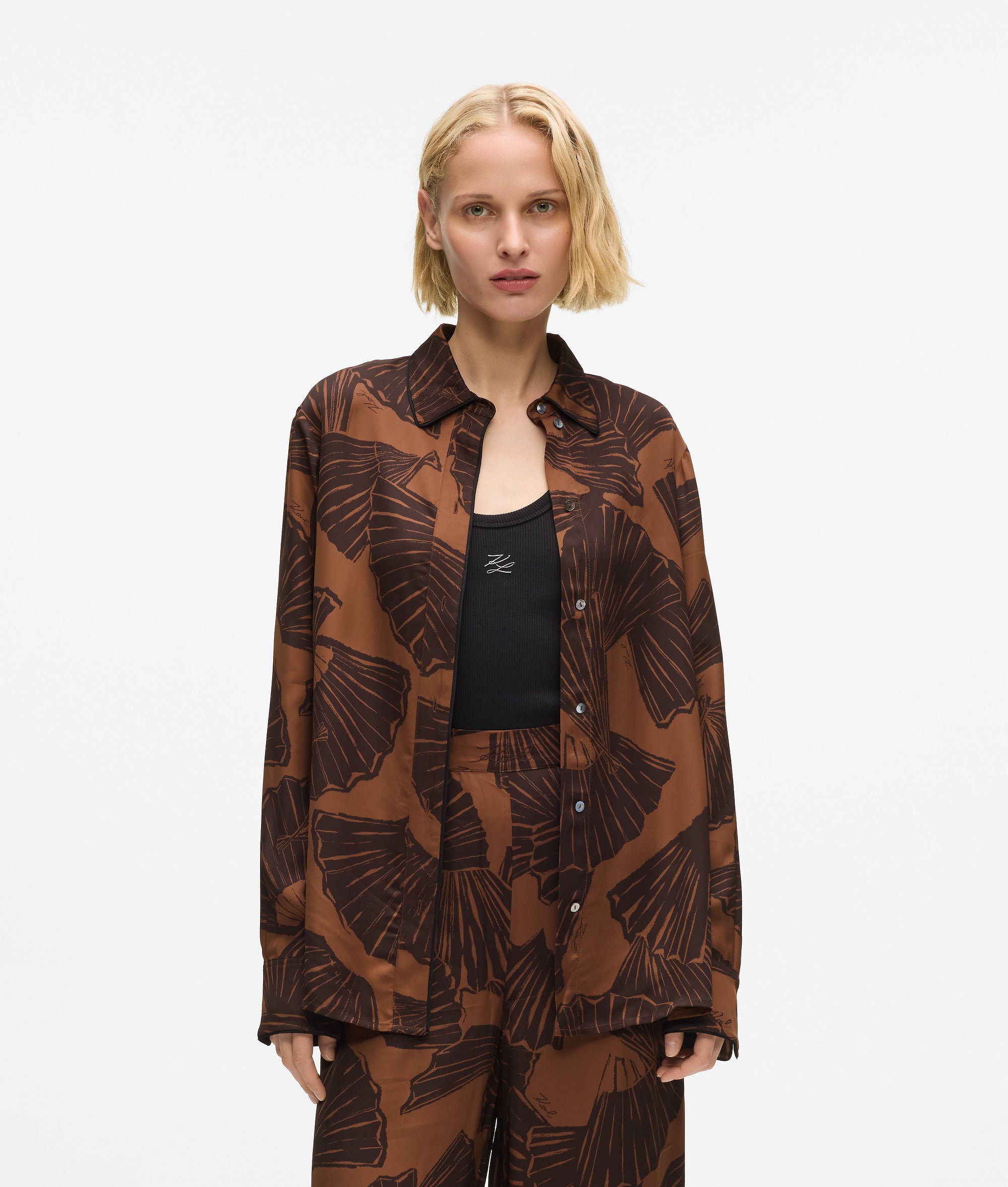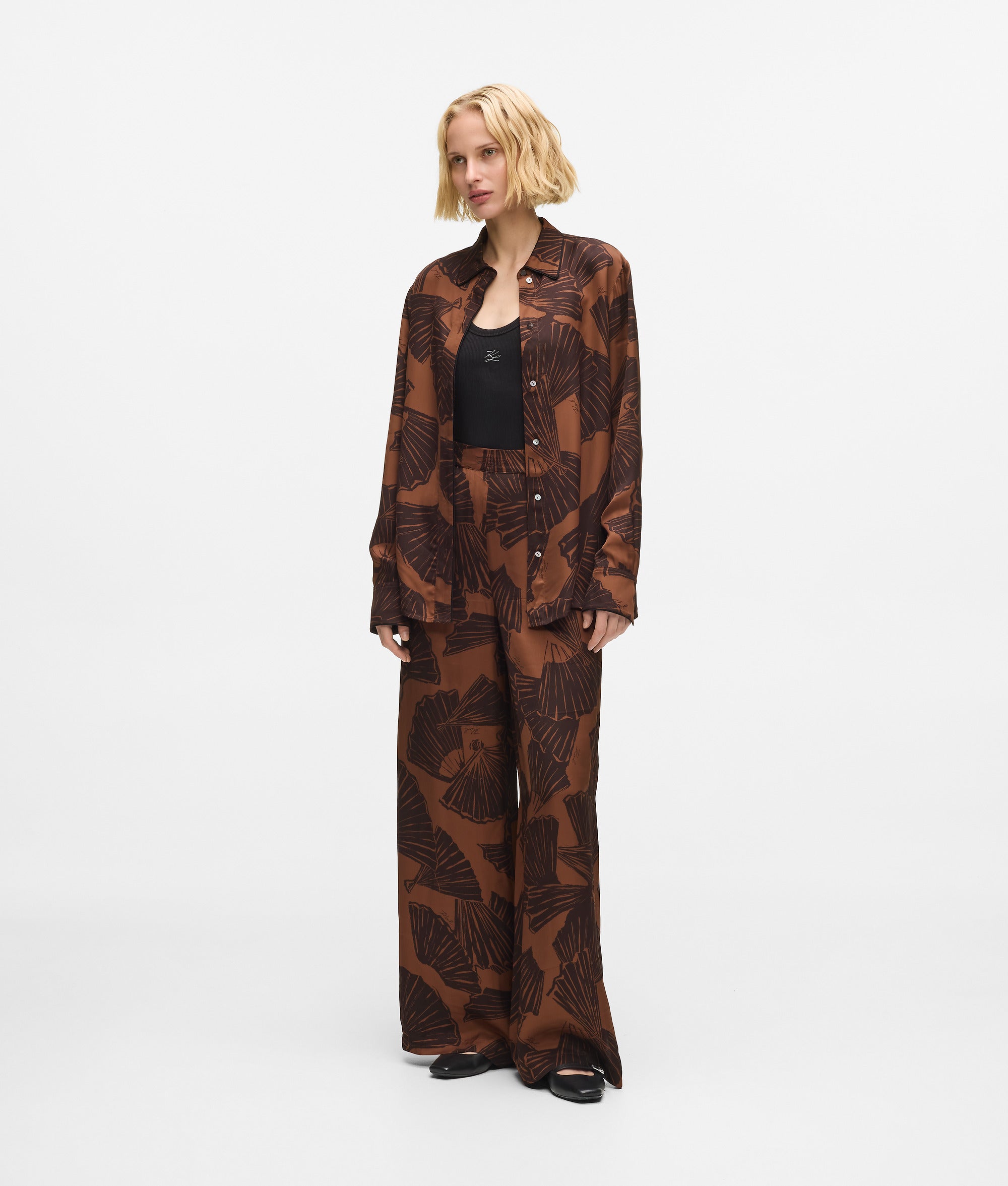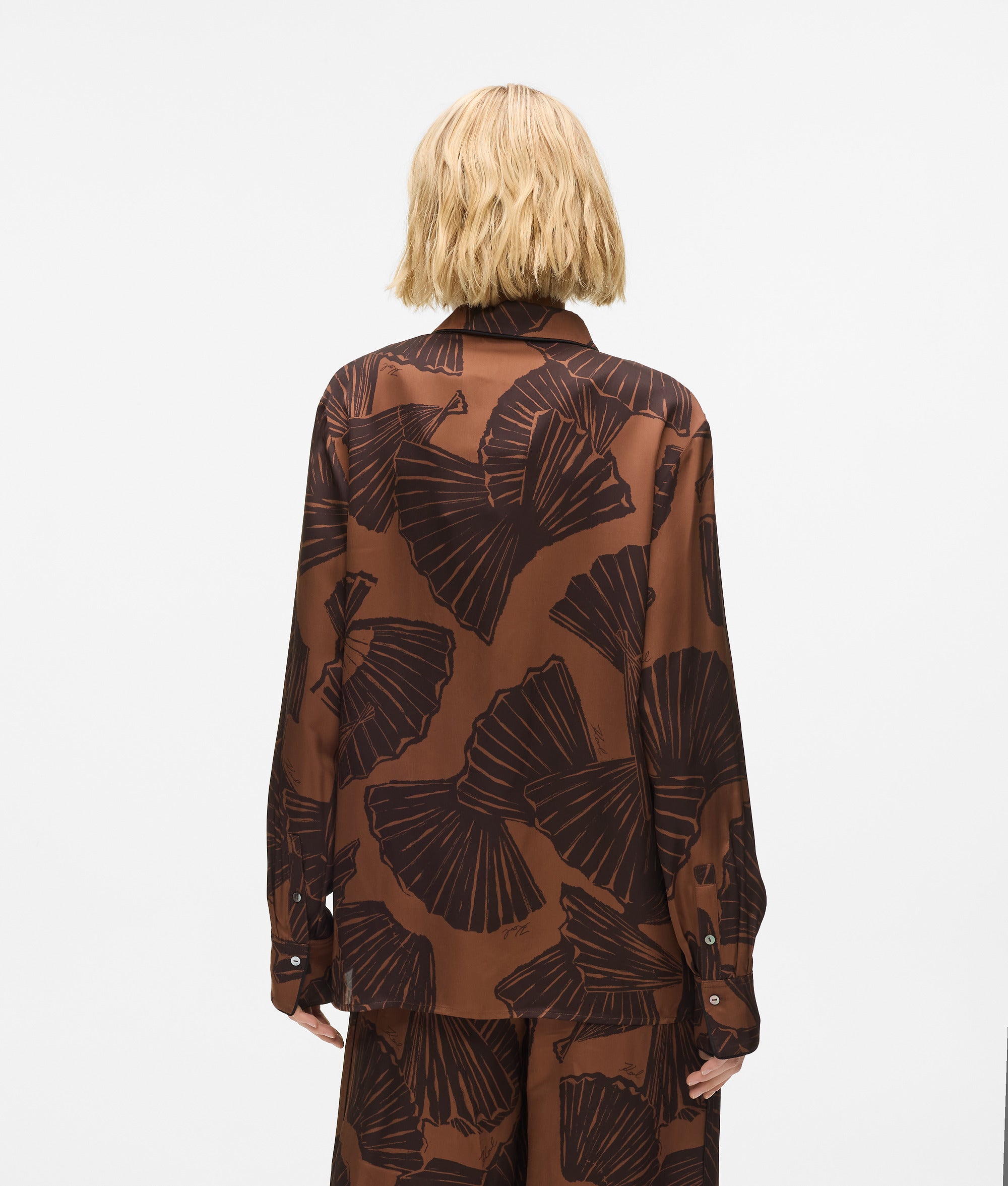 A fluid long-sleeved shirt that moves with ease. The woven viscose offers breathable comfort. while the graphic fan print adds dynamic flair.