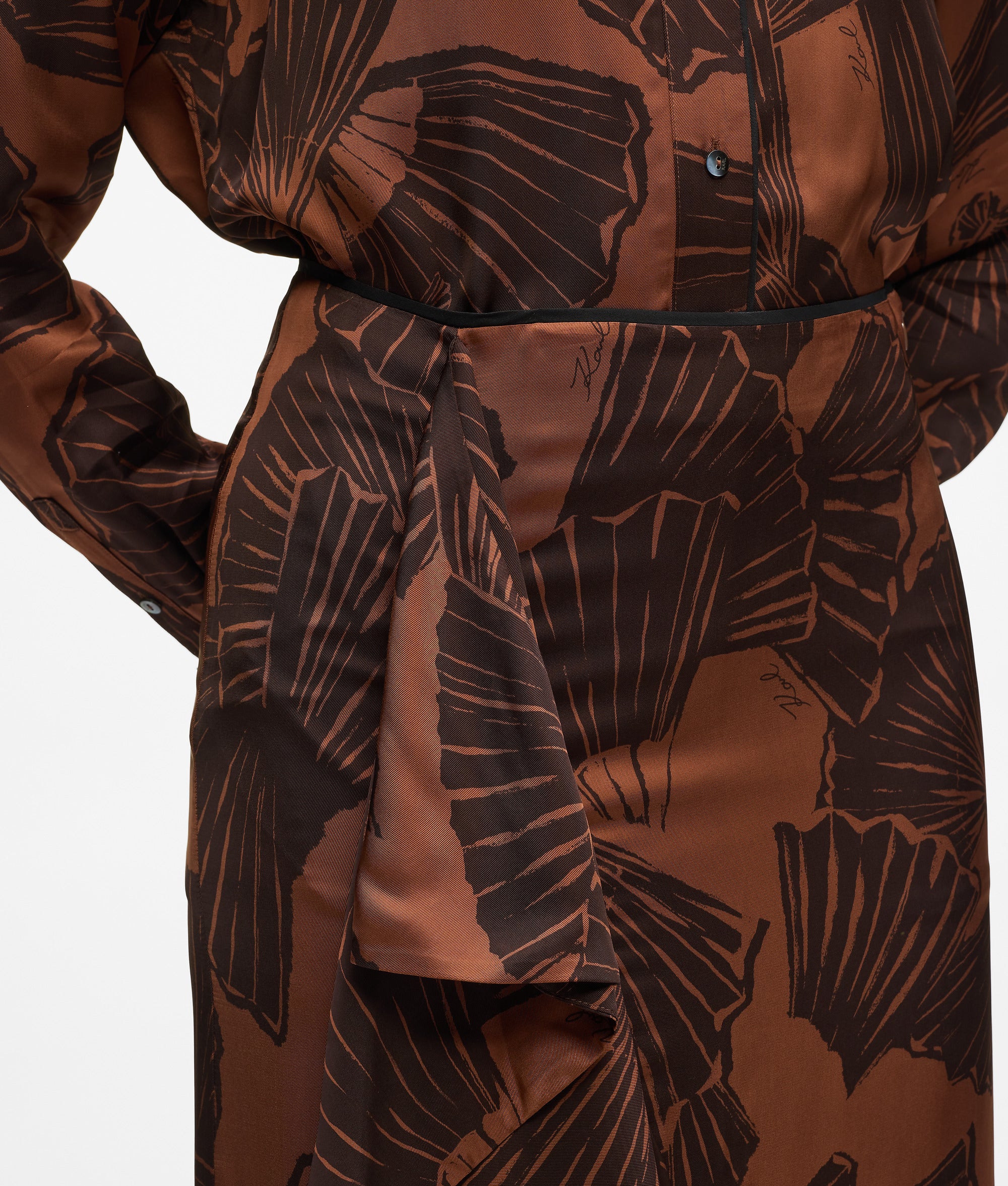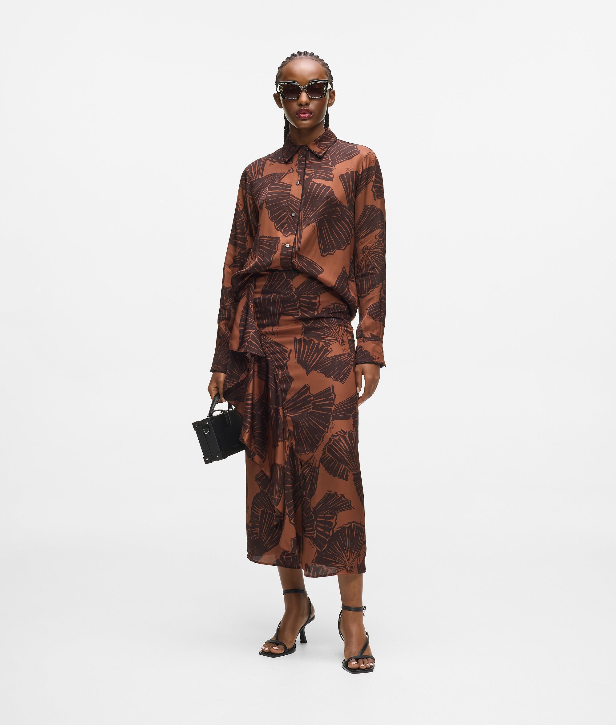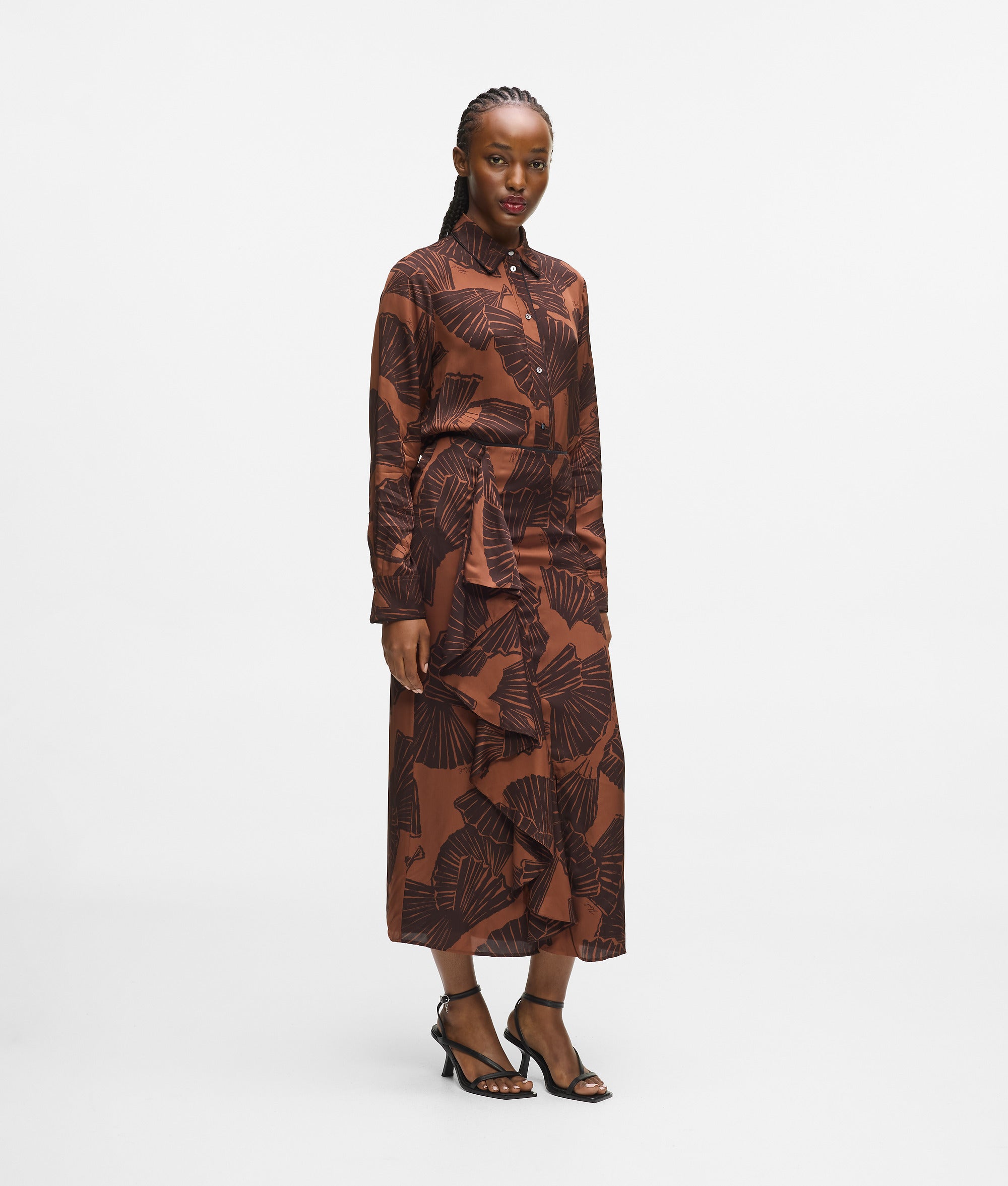 Crafted from fluid viscose. this statement skirt features a bold fan print and delicate ruffle for enhanced movement. An embroidered Signature logo brings subtle flair.