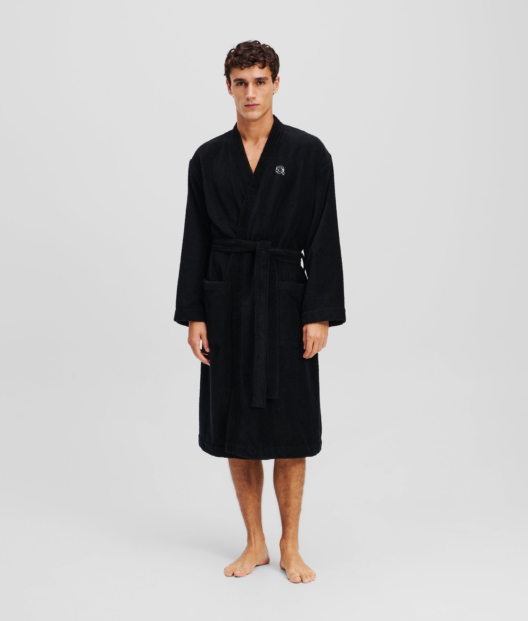 This cozy bathrobe combines comfort and style. featuring a self-tie belt and front patch pockets for practicality. Standout IKON artwork at the back adds a bold touch to your loungewear lineup.?