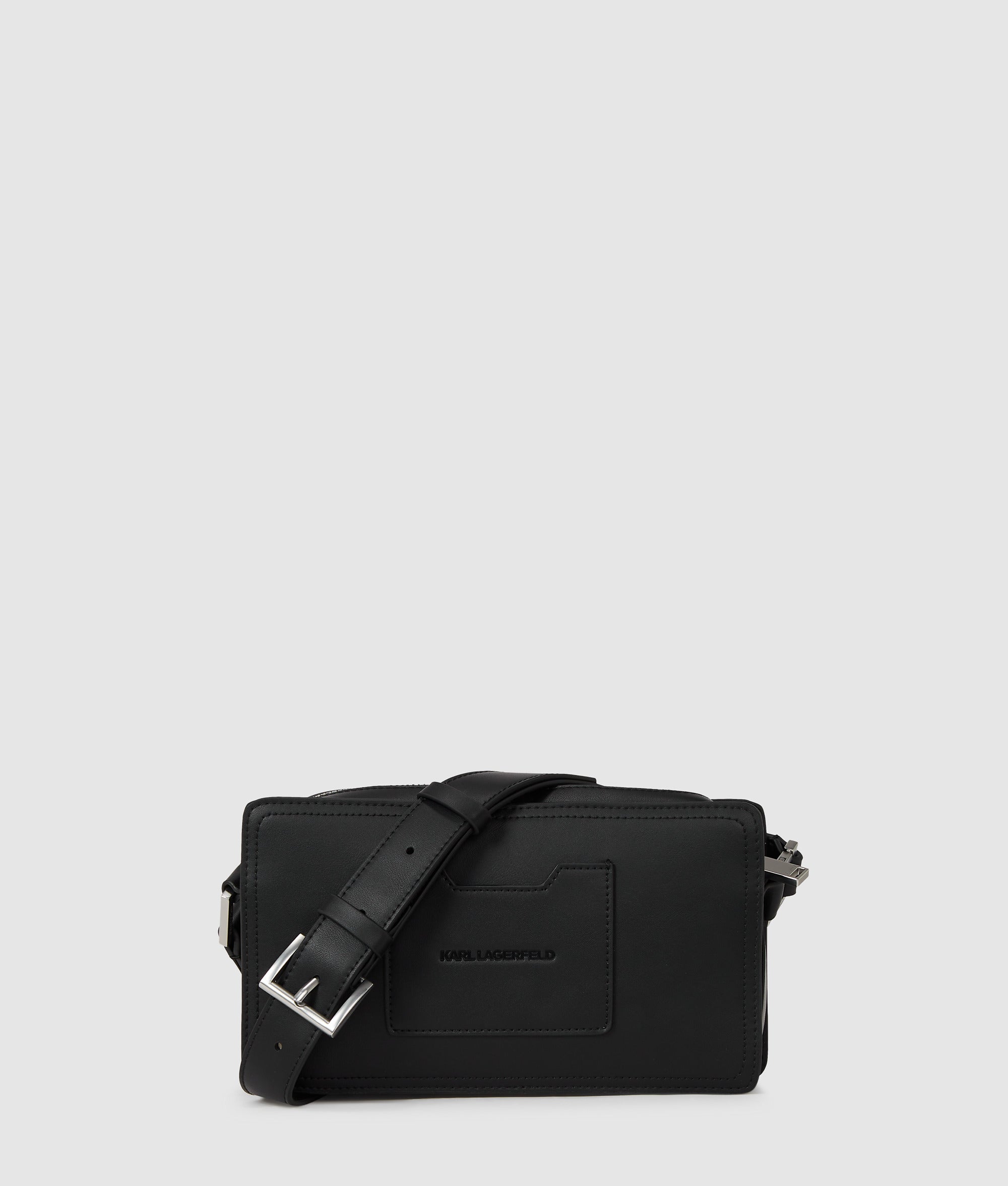 The K/Autograph camera bag offers timeless style with a contemporary edge. Featuring a secure zip closure. with a sleek front slip pocket and versatile strap. anchored by minimalist Karl Autograph hardware.