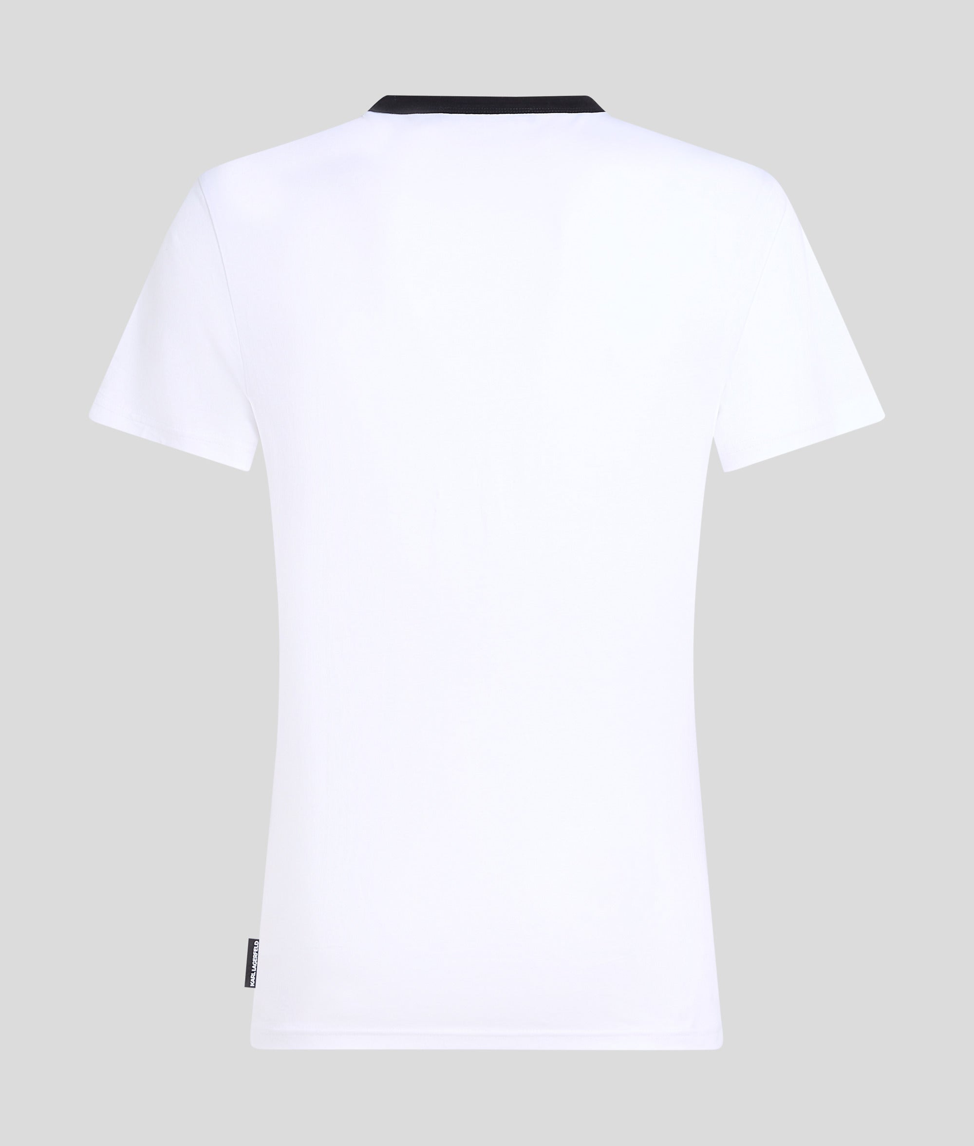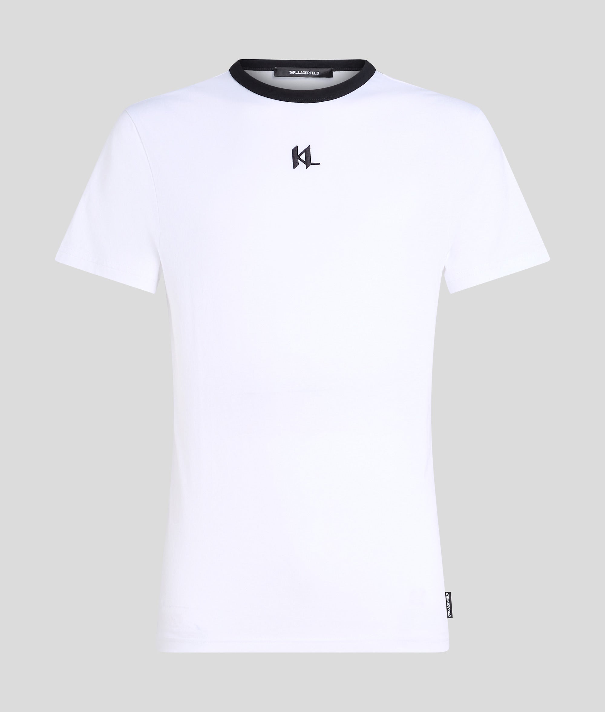 A seamless blend of comfort and style defines this fitted T-shirt. Featuring a contrasting ribbed crew neck and adorned with KARL Monogram embroidery. it effortlessly merges casual flair with a polished look.?