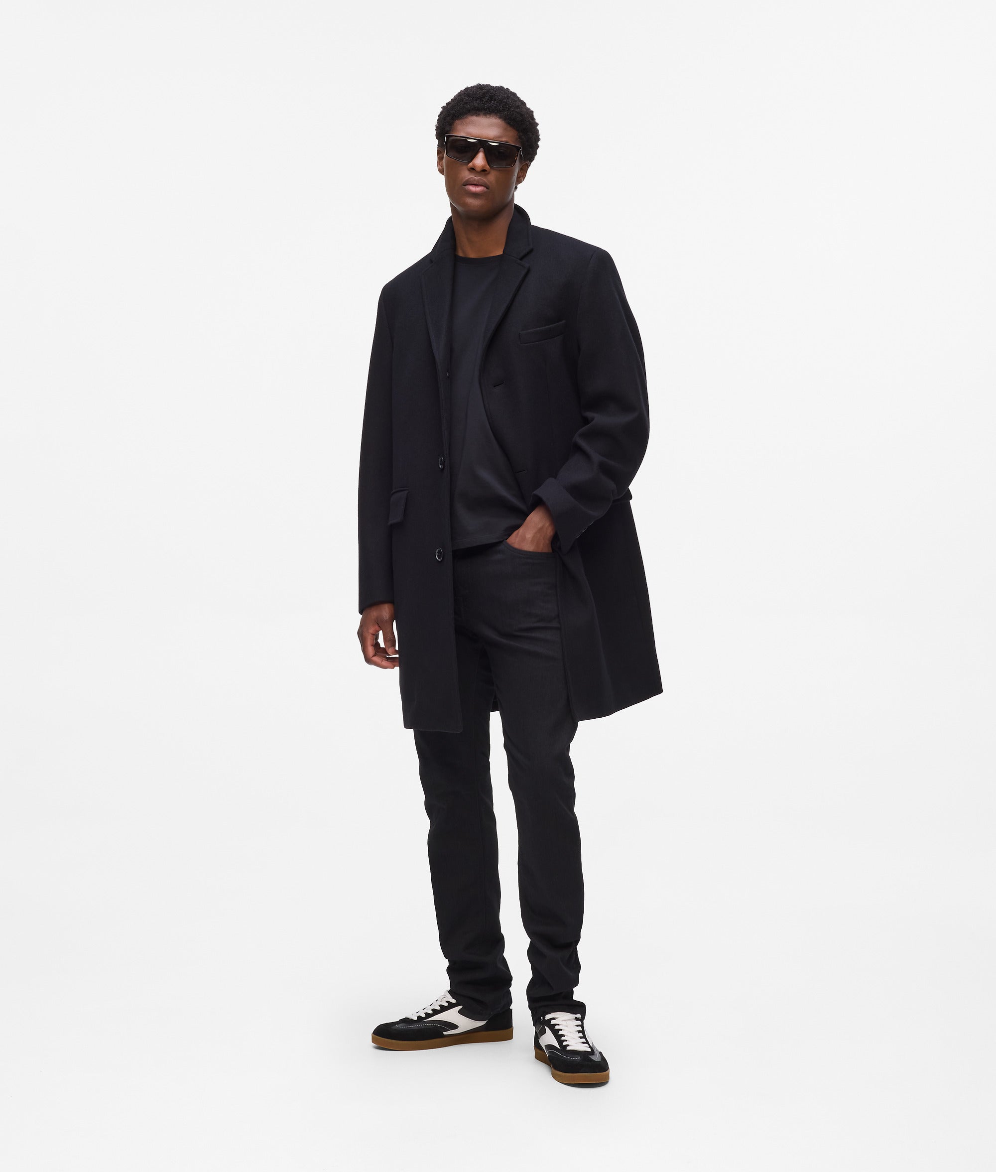 A tailored silhouette brings sharp lines and structure to this classic coat. while soft wool-blend fabric offers essential warmth on chilly winter days. Twin flap pockets add subtle utility to the refined outerwear essential.